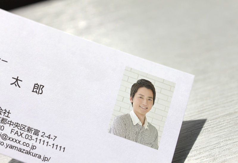 顔写真が入った名刺、皆さんも一度は手にしたことがあるのではないでしょうか。顔写真入り名刺のメリットと言えば、名前と顔が一致し相手に覚えてもらいやすいという点です。一度に複数名と名刺交換した時や、名刺交換してから時間が経ってしまうと顔を忘れてしまうこともありますよね。そんな時、名刺の顔写真を見てどんな方だったか思い出せたという経験をお持ちの方も少なくないはずです。顔が思い出せると、連鎖的にその時の打ち合わせの内容も思い出しやすくなるかもしれません。