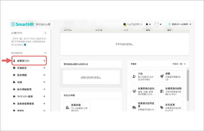 左側メニューにある「従業員リスト」をクリックします。