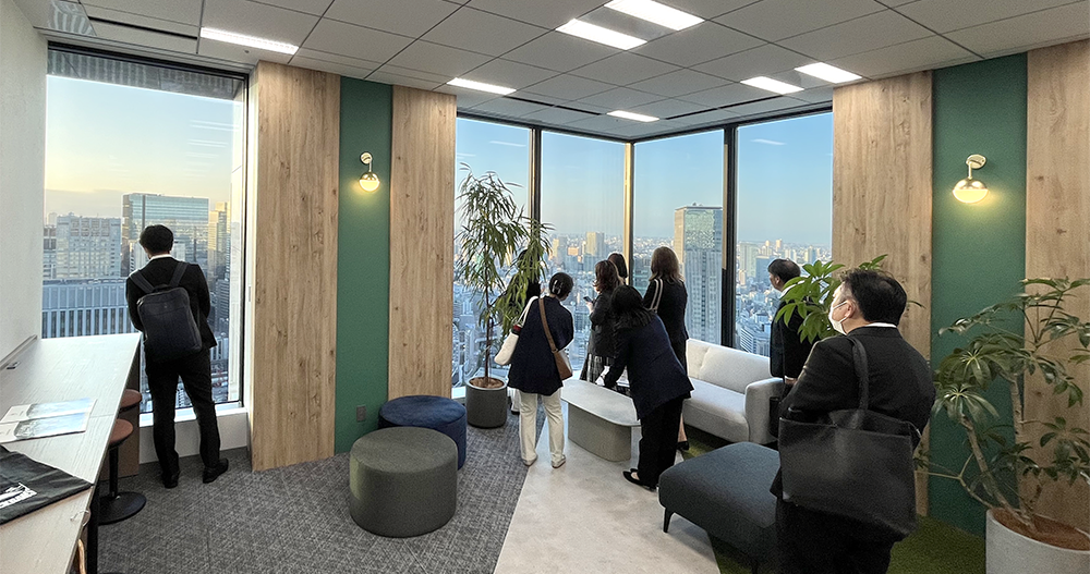次のプログラムでは、ViCreA東京のオフィス見学を行いました。「はたらく歓び」を感じじられるパークの実現に向けた、さまざまな取り組みをご覧いただき、働き方改革やウェルビーイングを重視したオフィスづくりのヒントを体感いただきました。