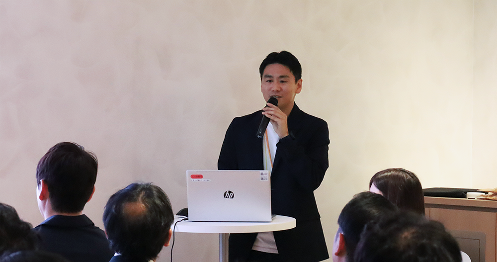イベントの幕開けを飾ったのは、株式会社山櫻 マーケティング部門 部長 村上氏による講演です。カーボンニュートラルの最新知識を紹介するとともに、山櫻におけるカーボンニュートラルの取り組みや、紙の名刺が環境に与える影響について解説しました。さらに「環境保全と本当の豊かさの共存」をテーマに、持続可能な未来に向けたヒントを参加者へ共有しました。